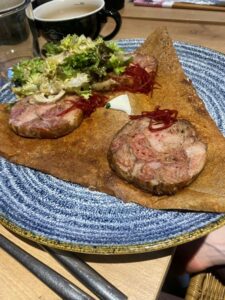 写真↑は、アンドゥイユ(豚の腸詰めソーセージ)のガレット