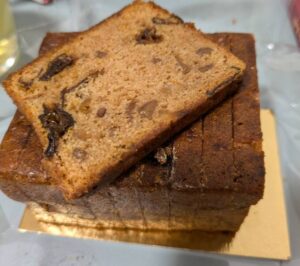 ここでいうスパイスは、 cannelle(シナモン)、noix muscade(ナツメグ)、girofle(クローブ)、poivre(コショウ)といった香辛料をミックスしたものです。このスパイスと小麦粉、蜂蜜を主な材料として焼き上げるパウンド型のケーキです。