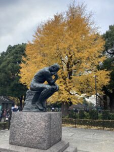 (国立西洋美術館入口の考える人・奥のいちょうがきれいでした。)